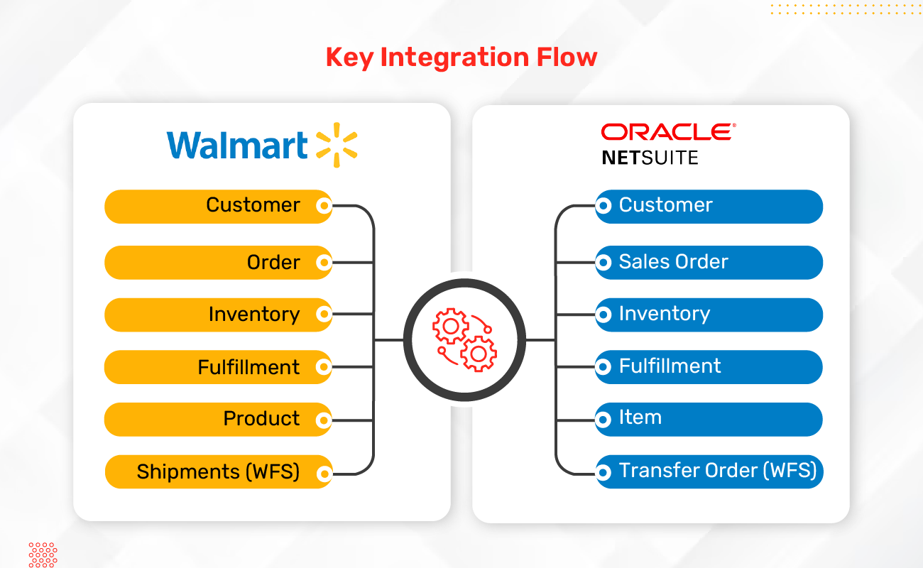 Walmart NetSuite Integration is a streamlined connection between Walmart’s e-commerce platform and NetSuite, a robust cloud-based Enterprise Resource Planning (ERP) system. This integration automates various processes, allowing businesses to efficiently manage orders, synchronize product data, and optimize inventory levels. It offers real-time data synchronization, ensuring that customer accounts, inventory, and sales orders seamlessly flow between the two platforms.